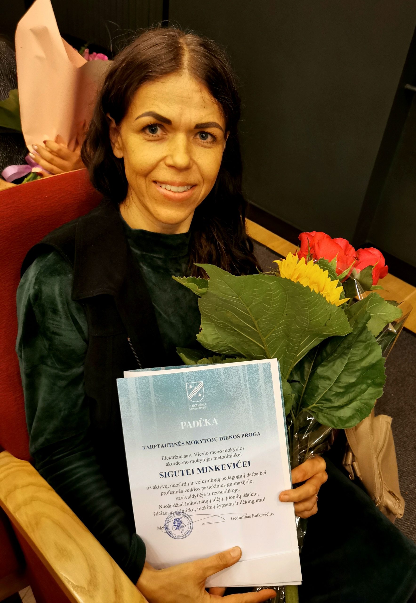 2025 m. spalio 2 d. Tarptautinės mokytojų dienos progą Elektrėnų savivaldybė įvertino mūsų akordeono mokytojos Sigutės Minkevičės pedagoginį darbą. Jai buvo įteiktas piniginis skatinimas ir padėka. Džiaugiamės mokytojos pasiekimais ir dėkojame už nuoširdų bei reikšmingą darbą ugdant jaunuosius akordeonistus.